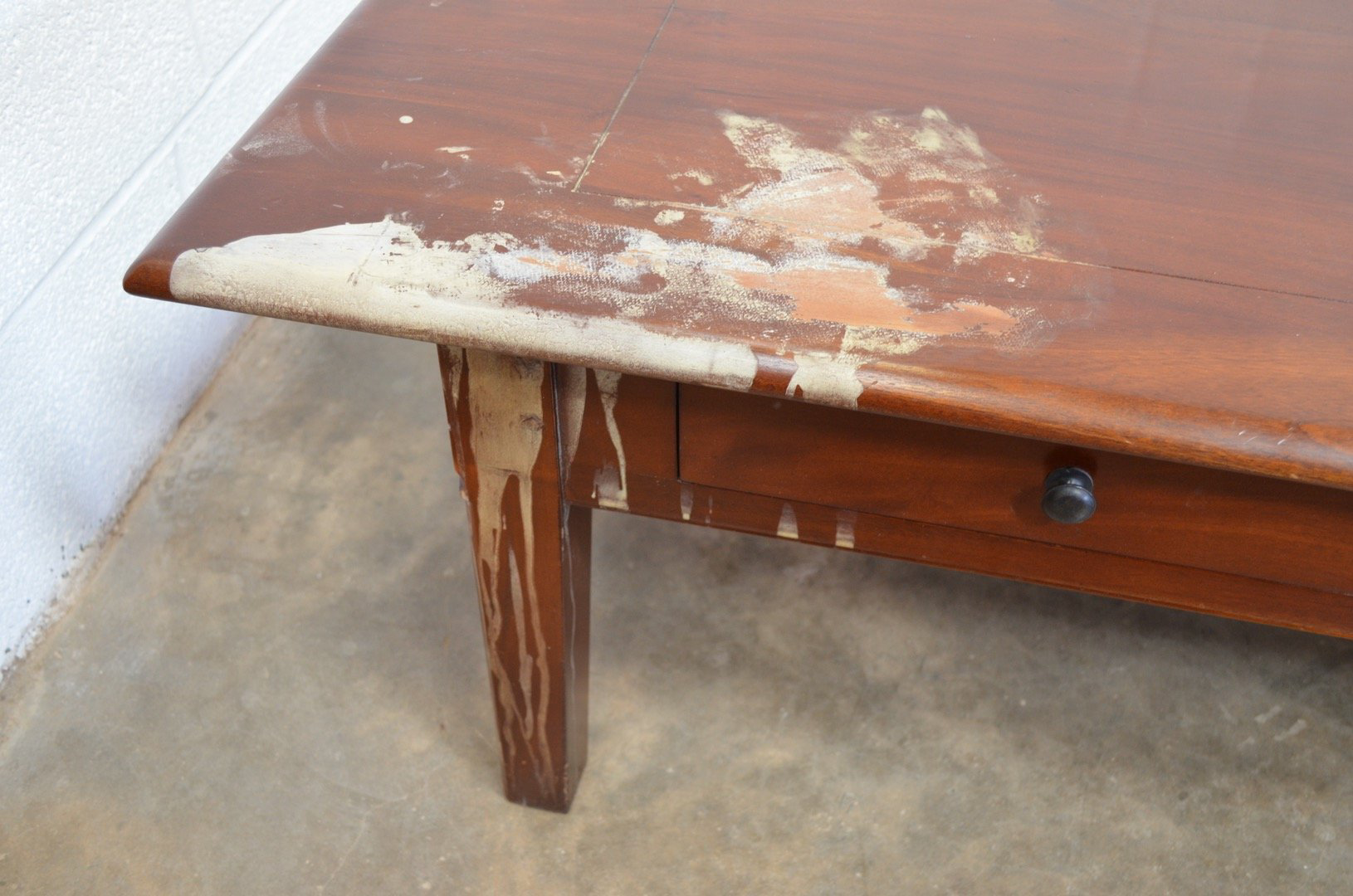 The method we use depends on the type and extent of the damage. Some pieces may require full refinishing, while others can be restored with more targeted repairs. Whenever possible, we focus on restoring only the affected area. For example, if a tabletop has a heat mark, we can often match the finish to the base, allowing us to restore just the top panel.