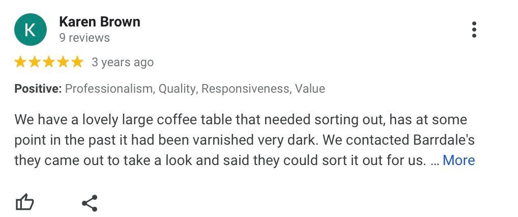 Barrdale French Polishers is a family-run furniture restoration business with over 50 years of combined experience in the industry. We offer a high quality, reliable service, and pride ourselves in going the extra mile to ensure our customers are happy with our service. We're a team of five that provides you with the right solution for your furniture.