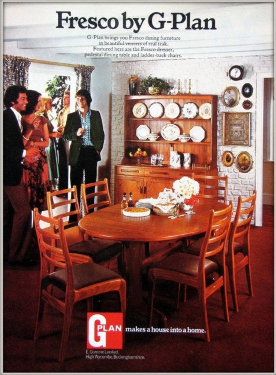As the popularity of modern, teak-finished furniture waned in the 1970s, G Plan released some short-lived ranges such as Libretto and Arcadia, which were a significant departure from Scandinavian design principles and were veneered in darker woods like mahogany or walnut.